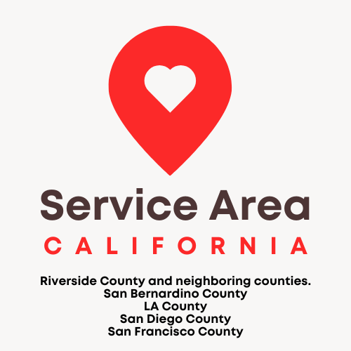 Riverside, San Diego, San Bernardino, Los Angeles, Sacramento, San Francisco, Alameda, Contra Costa, Santa Clara, Orange, Kern, Fresno, Imperial, and Stanislaus.